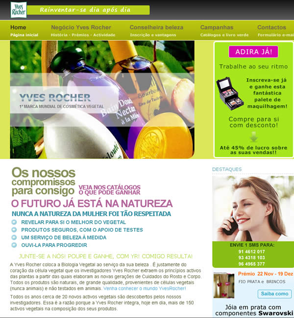 Estou aqui para disponibilizar o meu conhecimento, competências e produtos de Beleza e Higiene aos nossos clientes. Quero ser o seu ponto de referência em matéria de beleza e estética. Na Yves Rocher - Reinventar-se dia após dia , posso orgulhar-me de ter todos os tratamentos de beleza e bem estar aos melhores preços de mercado. Connosco o tratamento da saúde e beleza do corpo deixou de ser um artigo de luxo!